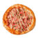 Пінса з сиром “Чеддер”, копченою куркою, мисливськими ковбасками та в’яленими томатами.
