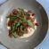 Пінса на вершковій основі з крем-сиром, трюфелем, лососем і фісташками.